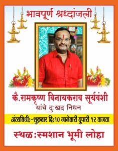 Home/आपला महाराष्ट्र/भावपूर्ण श्रद्धांजली Homeआपला महाराष्ट्र भावपूर्ण श्रद्धांजली एकमुक संपादक : वैजनाथ धोंडोपंत काप्रतवारJanuary 10, 20250 99 Less than a minute WhatsApp Twitter Facebook Email Print Tagsदुःखद निधन भावपूर्ण श्रद्धांजली Copy URL URL Copied एकमुक संपादक : वैजनाथ धोंडोपंत काप्रतवारJanuary 10, 20250 99 Less than a minute Facebook X LinkedIn Tumblr Pinterest Reddit VKontakte Share via Email Print