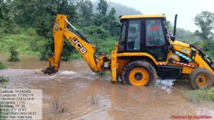 भोकर (बी.आर.पांचाळ) तालुक्यात गेली 3 दिवसापासून संततधार अतिवृष्टीने पाऊस चालू असल्यामुळे नदी नाल्यांना मोठ्या प्रमाणावर पूर आले आहेत,तलावा मध्ये देखील पाणी मोठ्या प्रमाणावर साठले आहे तालुक्यातील वाकद येथील पाझर तलावाला सायळी या प्राण्याने अनेक ठिकाणी छिद्र केले होते त्यामुळे तलावाला धोका निर्माण होऊ शकतो ही बाब लक्षात घेऊन तहसीलदार सुरेश घोळवे यांनी तात्काळ वाकद येथील तलावात जेसीबी लावून सांडव्याच्या भिंतीला छिद्र पाडून अधिक पाणीसाठा बाहेर काढल्याने धोका टळला आहे.