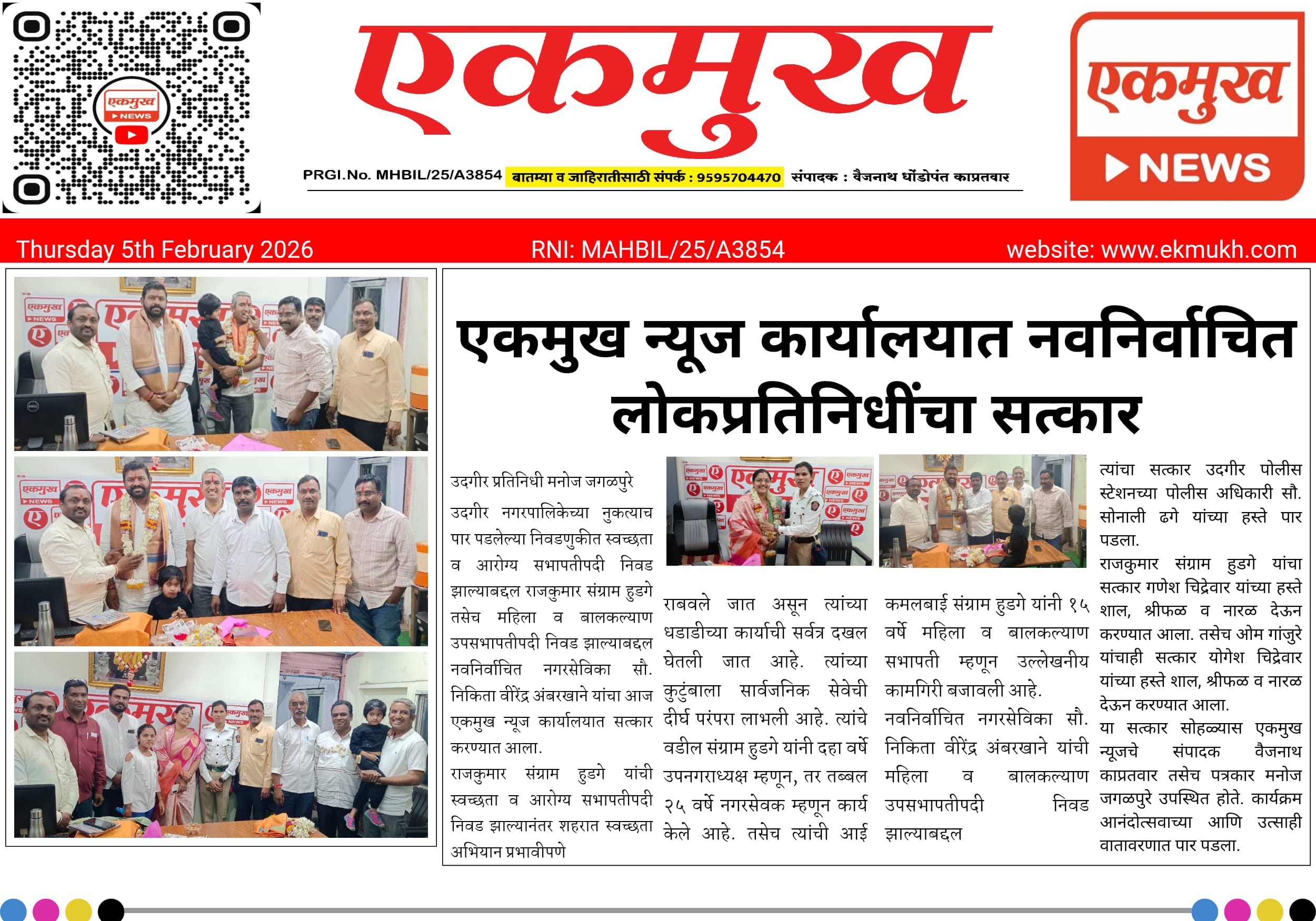 Home/आपला महाराष्ट्र/एकमुख न्यूज कार्यालयात नवनिर्वाचित लोकप्रतिनिधींचा सत्कार आपला महाराष्ट्रराजकारणसामाजिक कार्य एकमुख न्यूज कार्यालयात नवनिर्वाचित लोकप्रतिनिधींचा सत्कार एकमुक संपादक : वैजनाथ धोंडोपंत काप्रतवार3 hours ago0 3 Less than a minute WhatsApp Twitter Facebook Email Print Copy URL URL Copied एकमुक संपादक : वैजनाथ धोंडोपंत काप्रतवार3 hours ago0 3 Less than a minute Facebook X LinkedIn Tumblr Pinterest Reddit VKontakte Share via Email Print