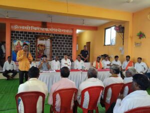 भोकर येथे 12 सप्टेंबर रोजी विश्वकर्मा मंदिरात समाज बांधवांचे बैठक आयोजित करण्यात आली होती यावेळी प्रथम खा.अशोकराव चव्हाण यांच्या हस्ते विश्वकर्मा प्रभूंची पूजा आरती करण्यात आली उपस्थित सर्व मान्यवरांचे मंदिर समितीच्या वतीने स्वागत करण्यात आले प्रास्ताविक मंदिर समितीचे सचिव बी.आर.पांचाळ यांनी केले मंदिराच्या जागेत भव्य सभा मंडप,परिसराला संरक्षण भिंत,सर्व बाजूंनी नाल्या करून विकास करावा असे मनोगत व्यक्त केले. यावेळी पुढे बोलताना खा.अशोकराव चव्हाण म्हणाले भोकर तालुक्याच्या विकासाला मागील 15 वर्षापासून आपण कुठेच कमी पडलो नाही,यापुढेही तालुक्याचा विकास मोठ्या गतीने होईल भोकर येथील विश्वकर्मा मंदिराची जागा भव्य असून त्या ठिकाणी नियोजनबद्ध आराखडा तयार करून परिसराचा चांगला विकास करण्यासाठी आपण कटिबद्ध आहोत असे सांगून देशाचे पंतप्रधान नरेंद्रजी मोदी यांनी दूरदृष्टी ठेवून सर्वांसाठी विविध विकासात्मक योजना आणल्या आता येणाऱ्या विधानसभा निवडणुकीत भाजपाच्या पाठीमागे खंबीरपणे उभा राहावे भोकर मतदार संघातून श्रीजया चव्हाण ह्या इच्छुक असून त्यांनाही सर्वांनी साथ द्यावी असे आवाहन खा.चव्हाण यांनी केले, एड.परमेश्वर पांचाळ यांनीही यावेळी विचार मांडले. या कार्यक्रमास माजी आमदार अमरनाथ राजुरकर, प्रकाश देशमुख भोशीकर,समन्वयक भगवानराव दंडवे,भाजपा ता.अध्यक्ष गणेश पा.कापसे,किशोर पाटील, विनोद पाटील चिंचाळकर, रामचंद्र मुसळे,दिलीपराव सोमठाणकर, विशाल माने, सुनील शाह,मिर्झा ताहेर बेग यांच्यासह महंत परमेश्वर महाराज,मंदिर समितीचे अध्यक्ष दत्तात्रय पांचाळ, डॉ.किरण पांचाळ,सुनील पांचाळ,मनोज सचिन पांचाळ,भगवान पांचाळ,बालाजी नारलेवाड,राजू पांचाळ,गोविंद सोमठाणकर,महेश पांचाळ यांच्यासह मोठ्या प्रमाणावर समाज बांधव उपस्थित होते