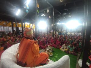 ही सर्व साधने तरुणांना भटकविण्याचे काम करत आहेत. मन्मथ माऊली, ज्ञानेश्वर माऊली, तुकाराम महाराज,स्वामी विवेकानंद यांच्याप्रमाणे नवतरुणांना धर्म धारण करण्याची गरज आहे. इतिहासात नवतरुणांनी आपल्या भूमीसाठी आपले रक्त सांडले. त्यावेळी त्यांचा त्याग ही धर्मासाठी फॅशन होती. आपले अनमोल जीवन फॅशनच्या नावाखाली वाया घालू नका. जीवन अनमोल आहे प्रत्येक अवयव अनमोल आहे. त्यामुळे शरीराची काळजी घ्या देशासाठी व धर्मासाठी स्वतःचे आचरण ठेवा. एक वेळा जेवण करणारा योगी, दोन वेळा जेवण करणारा भोगी, तीन वेळा जेवण करणारा रोगी व अल्प आहारी शिवयोगी. संतांनी ही परंपरा अवलंबिली. मर्यादा प्रत्येक गोष्टीला औषधाचे काम करते. पाश्चात्य देश आपले अनुकरण करत आहेत. आपली भूमी, आपली परंपरा, आपले संस्कार पूजनी आहेत. संत समाजाला सोप्या भाषेत धर्म समजावून सांगतात. आपण कोण आपले कर्तव्य काय याचा विचार करण्याची गरज आहे आणि हे विचार संतांच्या सद्गुरूंच्या सानिध्यात तयार होतात. “आपुला आपण करावा विचार, करावया पार भवसिंधु..”संत कुठल्याही कुटुंबात, धर्मात जन्माला आले तरी ते या धर्माच्या कितीतरी वर पोहोचलेले असतात. अखिल प्राणीमात्राला सन्मार्ग मिळावा यासाठी प्रेरित करतात धर्माचे पालन करणे आपले कर्तव्य आहे. धर्माचे आचरण केले तर धर्म वाढेल नसता तो कधी लुप्त होईल हे समजणारही नाही. मन्मथ माऊलींनी सोळाव्या शतकात धर्मजागविण्याचे काम केले. “निजू नका जागा जागा, स्व-धर्माने वागा”. “धर्म तो कुळीचा जाणिजे..” सर्व जाती वेगवेगळ्या असल्या तरी हिंदू धर्माचा धागा एक आहे. ज्योत से ज्योत जगाते चलो प्रेम की गंगा बहाते चलो… असा महान संदेश देत सर्वांना सामावून घेतो, कोणाचाही विरोध करत नाही, आपले तत्व सोडत नाही तो वीरशैव. आपण आपल्यात भांडत राहिलो तर समाप्त होऊ. एका विचारात राहिलो तर शाश्वत राहू. तरुणांनी या विचारधारेत येऊन आपल्या कुळाचा जातीचा व धर्माचा उद्धार करायला हवा असा महान संदेश सद्गुरु श्री सिद्ध चैतन्य शिवाचार्य महाराज साखरखेर्डा यांनी आपल्या प्रवचनातून दिला.