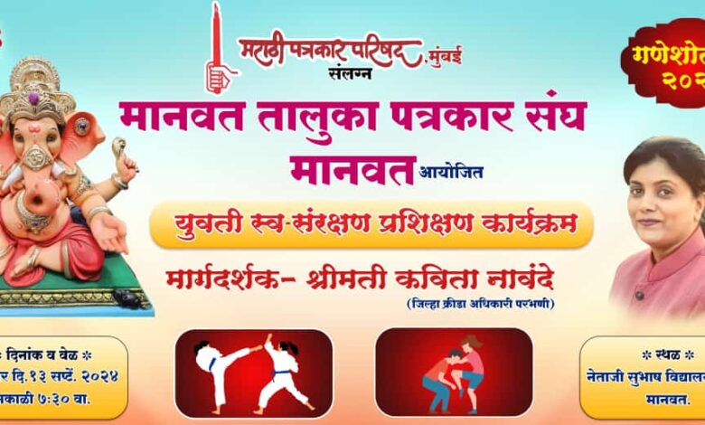 मानवतला युवती स्वसंरक्षण प्रशिक्षण पत्रकार संघ गणेश मंडळाचा उपक्रम